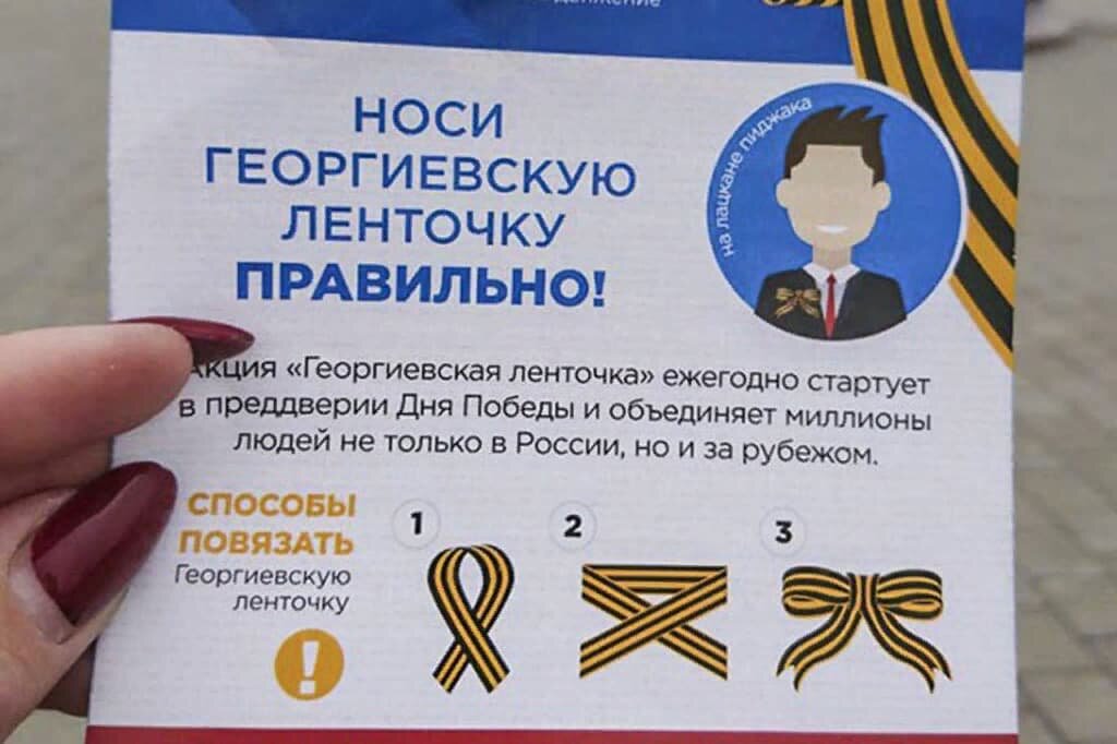 У волонтёров также можно будет взять памятку с информацией о том, как правильно завязывать Георгиевскую ленточку.